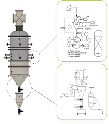 - Two hoppers (lock hopper + injection vessel) and screw feeder | |